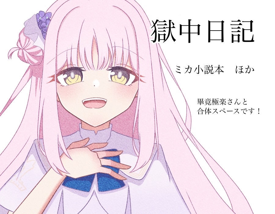 ![]() | 配置:Gloria Patri Lv.15 (G15) サークル名:獄中日記 代表者名:羽鳥 URL:https://x.com/hatorinio |