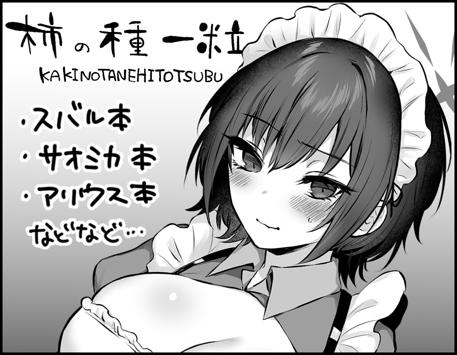 ![]() | 配置:とりあり第15班 (ト15) サークル名:柿の種一粒 代表者名:柿野なしこ URL:https://x.com/narnashi_ |